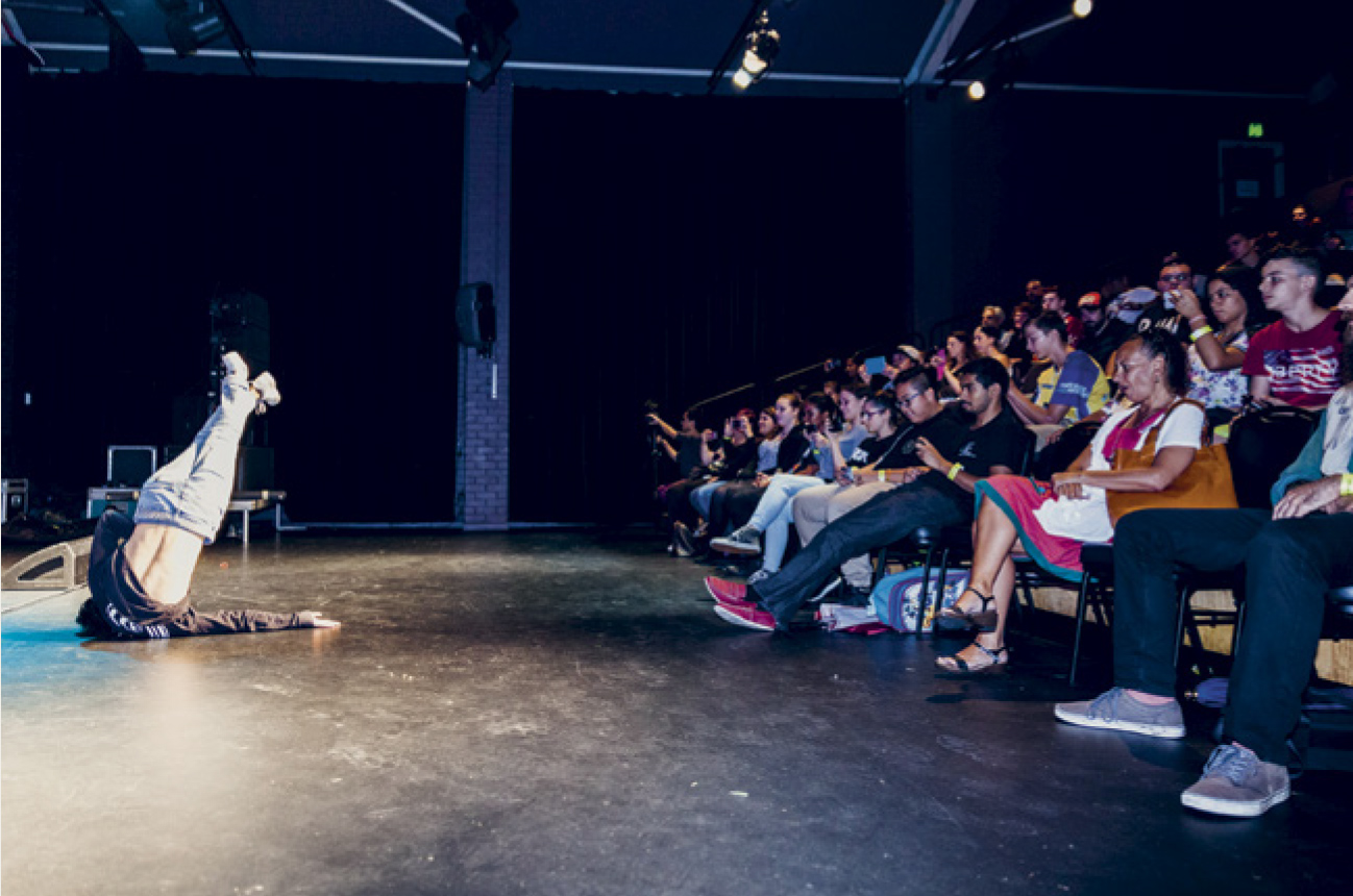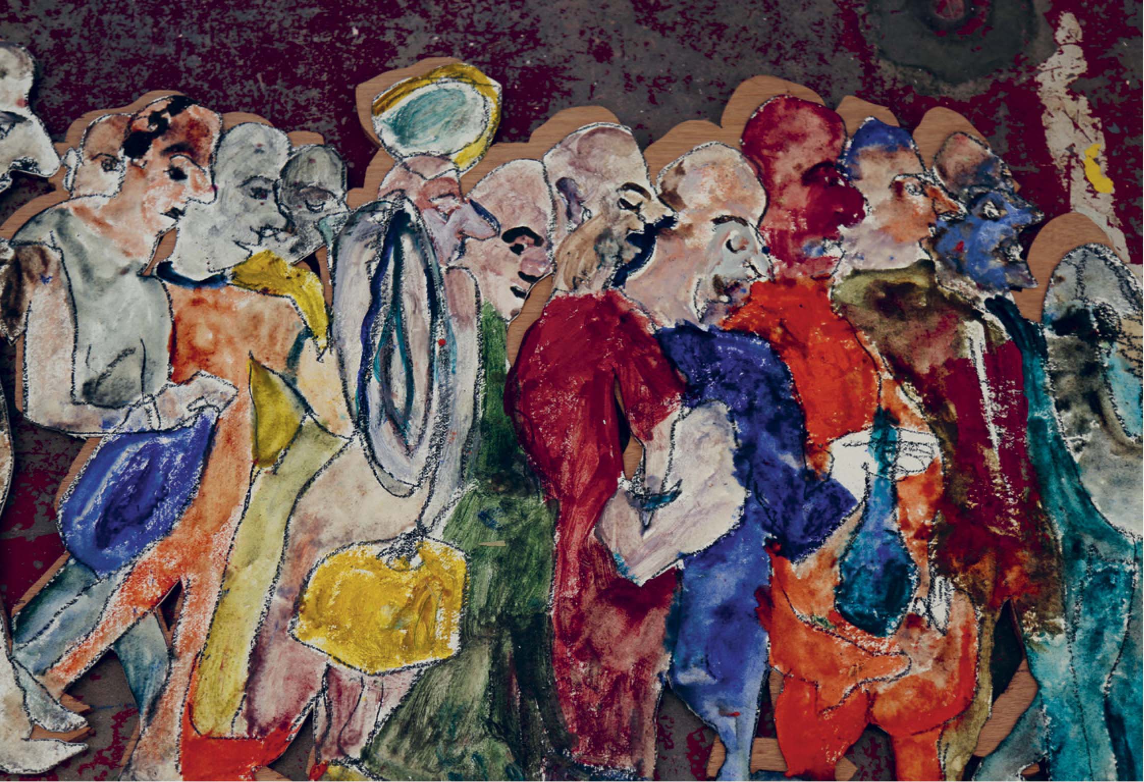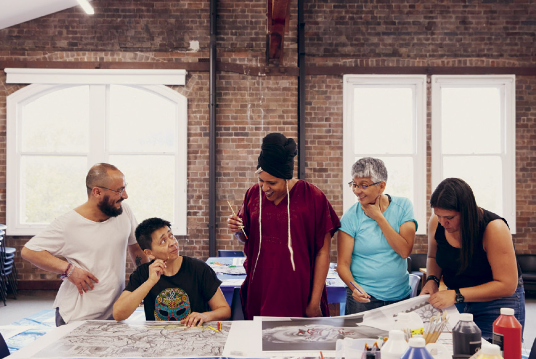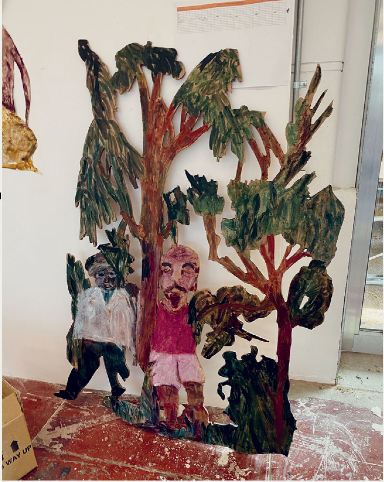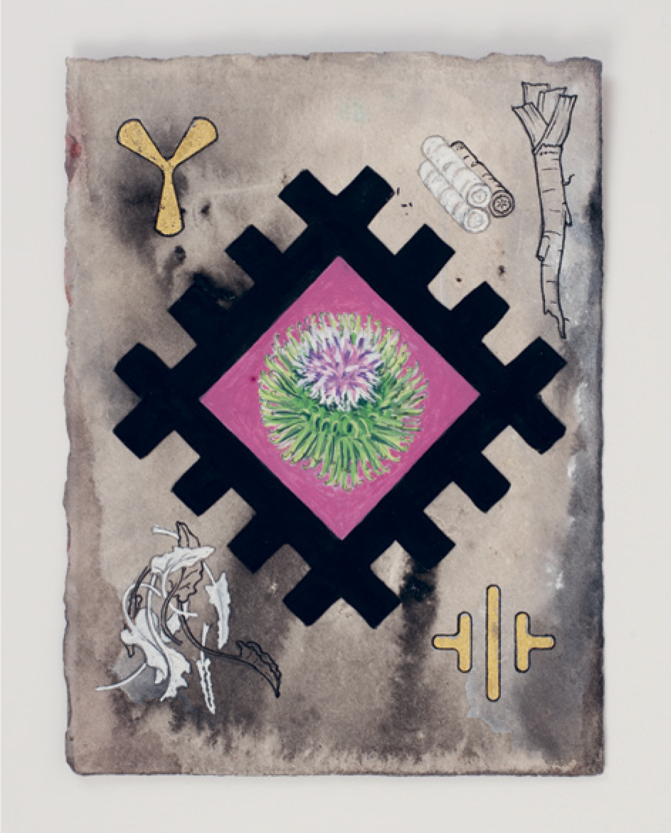 ↗ Eric Bridgeman and Haus Yuriyal, SUNNA (Middle Ground), 2020, multimediainstallation, round house, picture house, painting, billum weaving, photography, video, audio, dimensions variable. Installation progressview (2020) for the 22nd Biennale of Sydney, Cockatoo Island. Photograph: Zan Wimberley. Courtesy the artist; Milani Gallery, Brisbane; 20 and Gallerysmith, Melbourne.