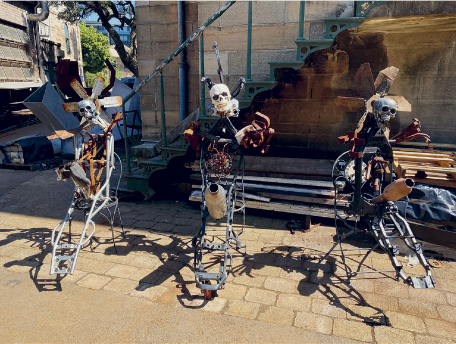 ↖ ↑ Jose Dávila, The Act of Perseverance, 2020, site specific mixed media installation with found materials from CockatooIsland, dimensions variable. Installation progress view, detail (2020) for the 22nd Biennale of Sydney, Cockatoo Island. Photograph: ZanWimberley. Courtesy the artist and König gallery